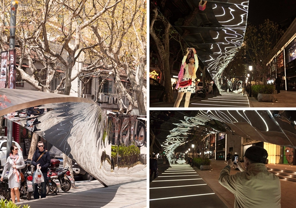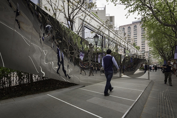 上海新天地的一個(gè)街頭公共藝術(shù)設(shè)施。該公共裝置位于馬路和步行廣場(chǎng)之間,與城市以及其中來(lái)往的人群發(fā)生著關(guān)聯(lián)。UNStudio的Ben van Berkel提到消費(fèi)文化不僅僅是購(gòu)物那么簡(jiǎn)單,而是和整個(gè)生活圖景有關(guān),我們消費(fèi)我們的城市,我們周圍的建筑,我們周圍的人群,甚至包括我們自己。