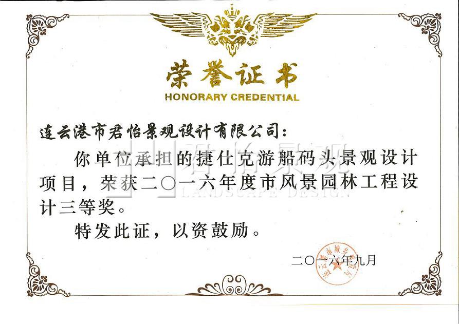 2016年獲獎(jiǎng)證書