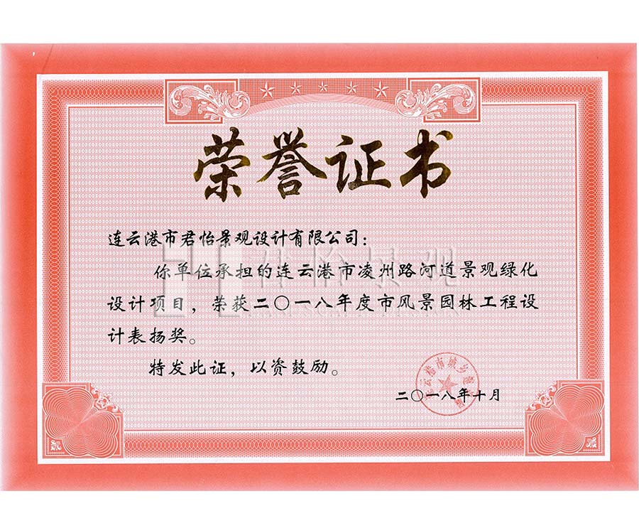 市風(fēng)景園林工程設(shè)計(jì)表揚(yáng)獎(jiǎng)