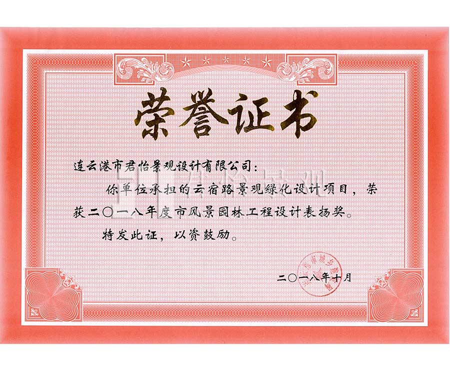 2018年市風(fēng)景園林工程設(shè)計(jì)表?yè)P(yáng)獎(jiǎng)